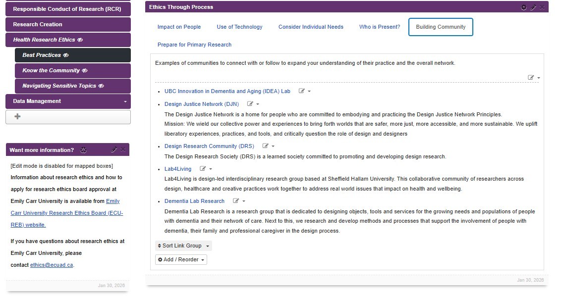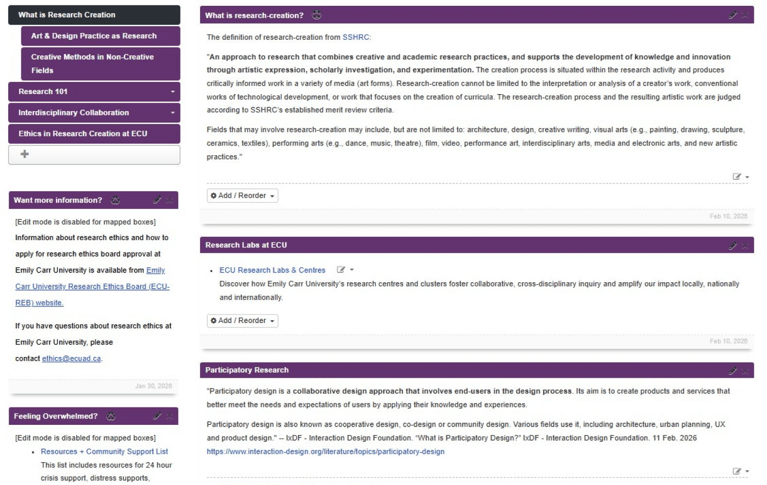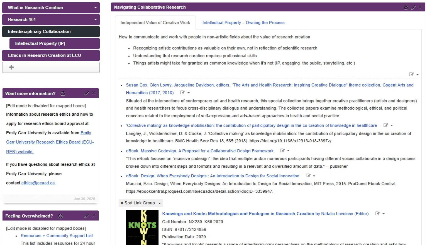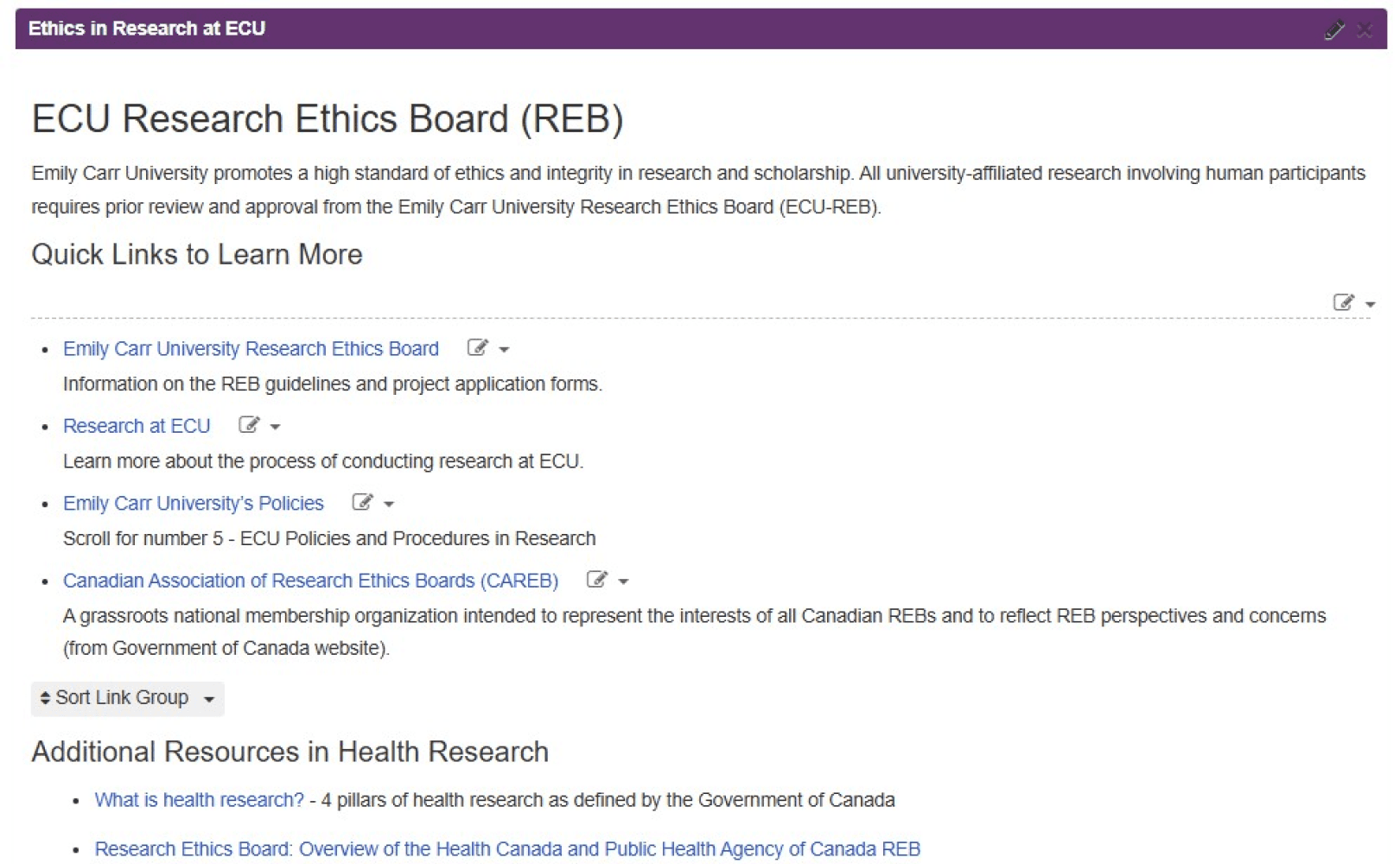 The Library of Emily Carr University (ECU) was looking to expand their research guides and improve the ways in which students access information on Ethics in Health Research and Research Creation, by researching and creating additional student materials.