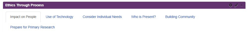 In addition to providing materials that would inform students on the importance of ethics when working with different groups (such as BIPOC, LGBTQ+, people with disabilities, etc.) that the guide has began to cover, I included additional sections: