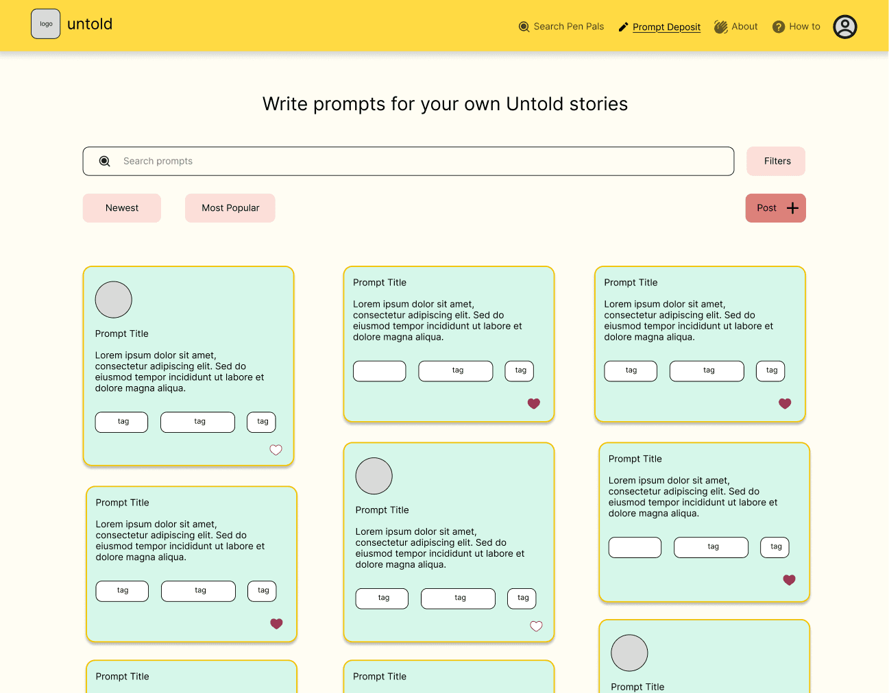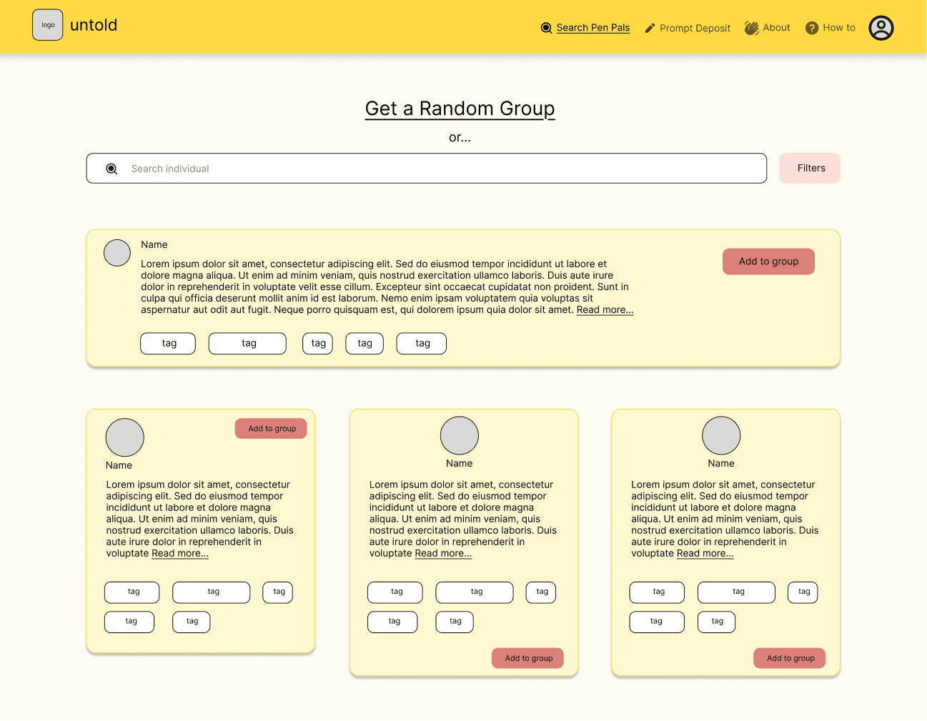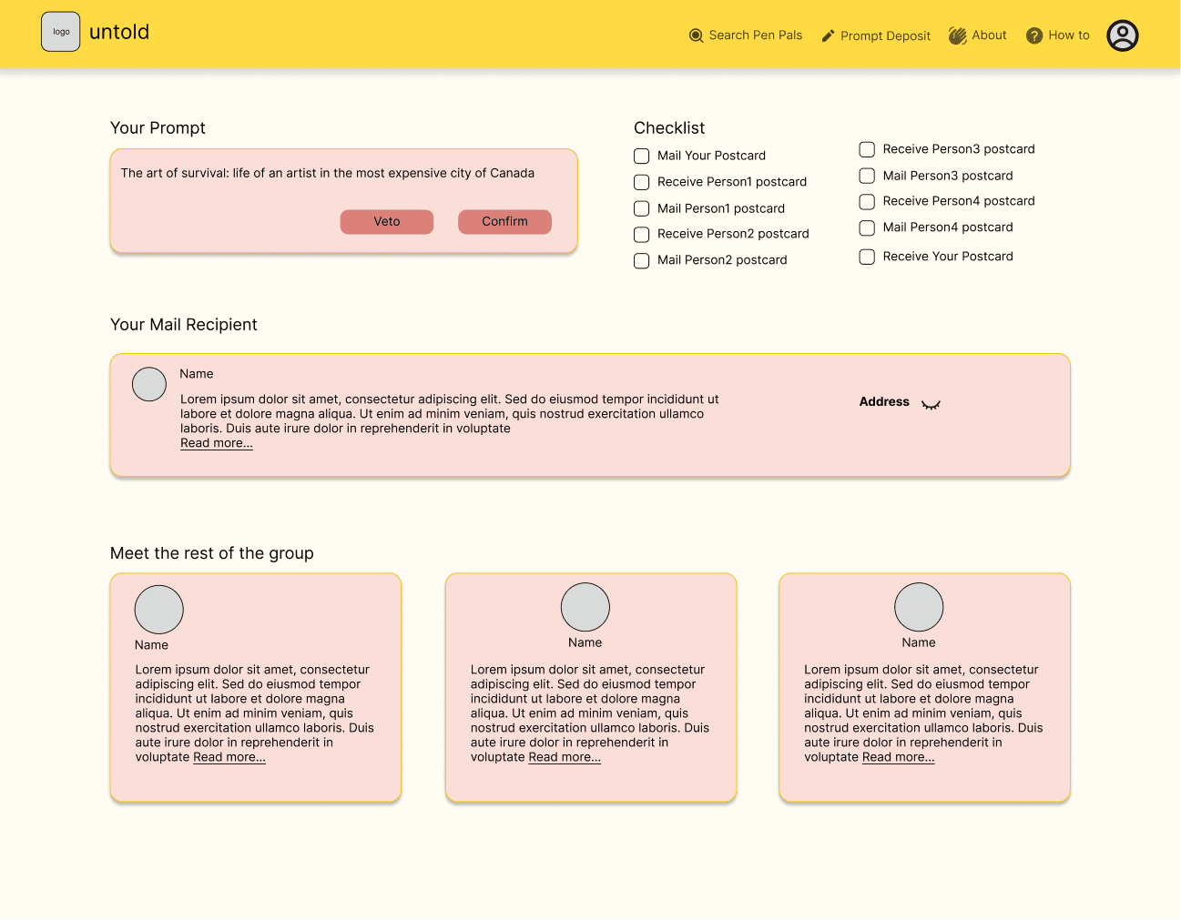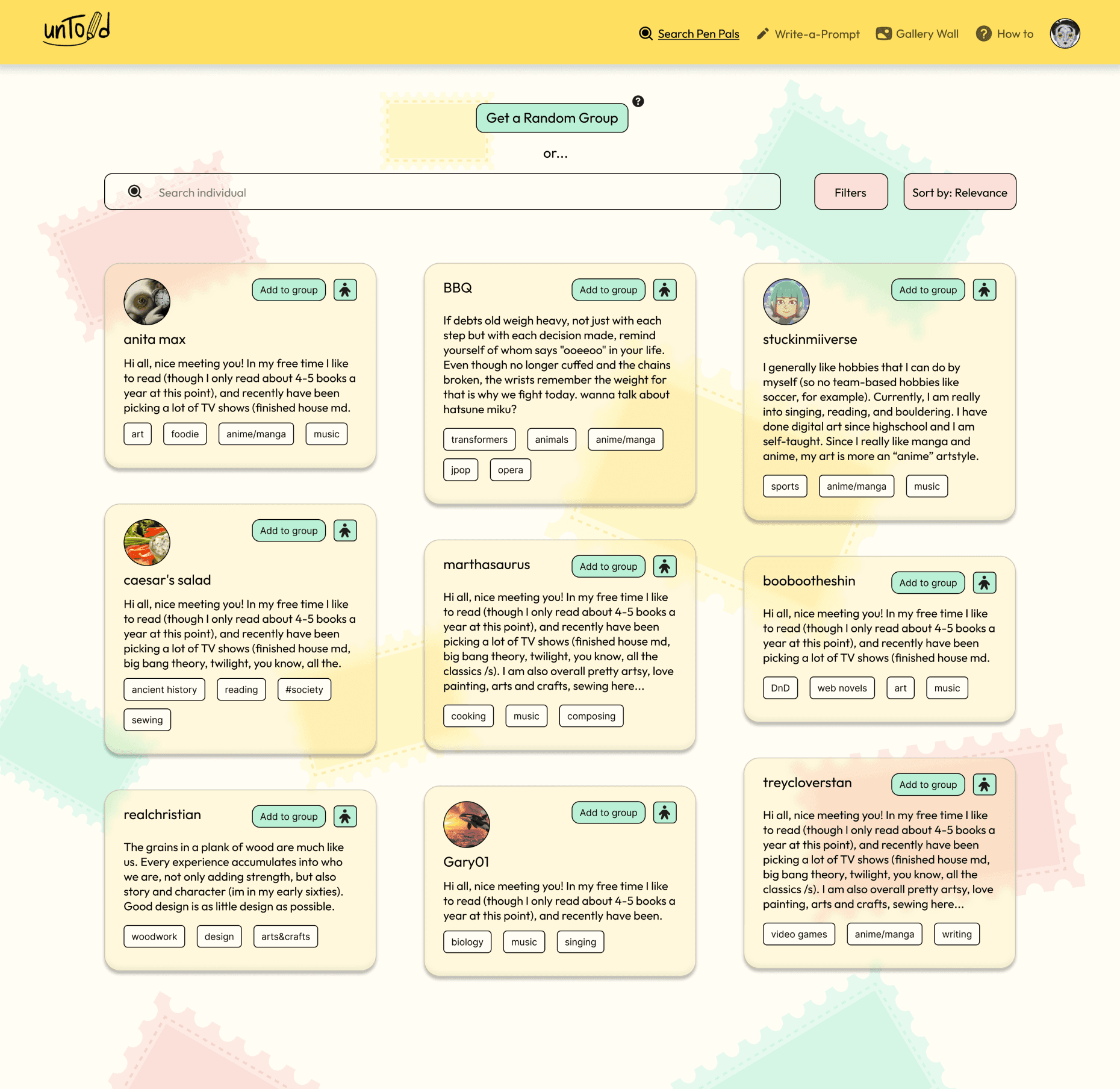 Based on the insights discovered through the layering of discovery research and iterative user testing sessions, unTold became a comprehensive art pals system, that aims to bring communities together for the creative and collaborative exchange of their untold stories.