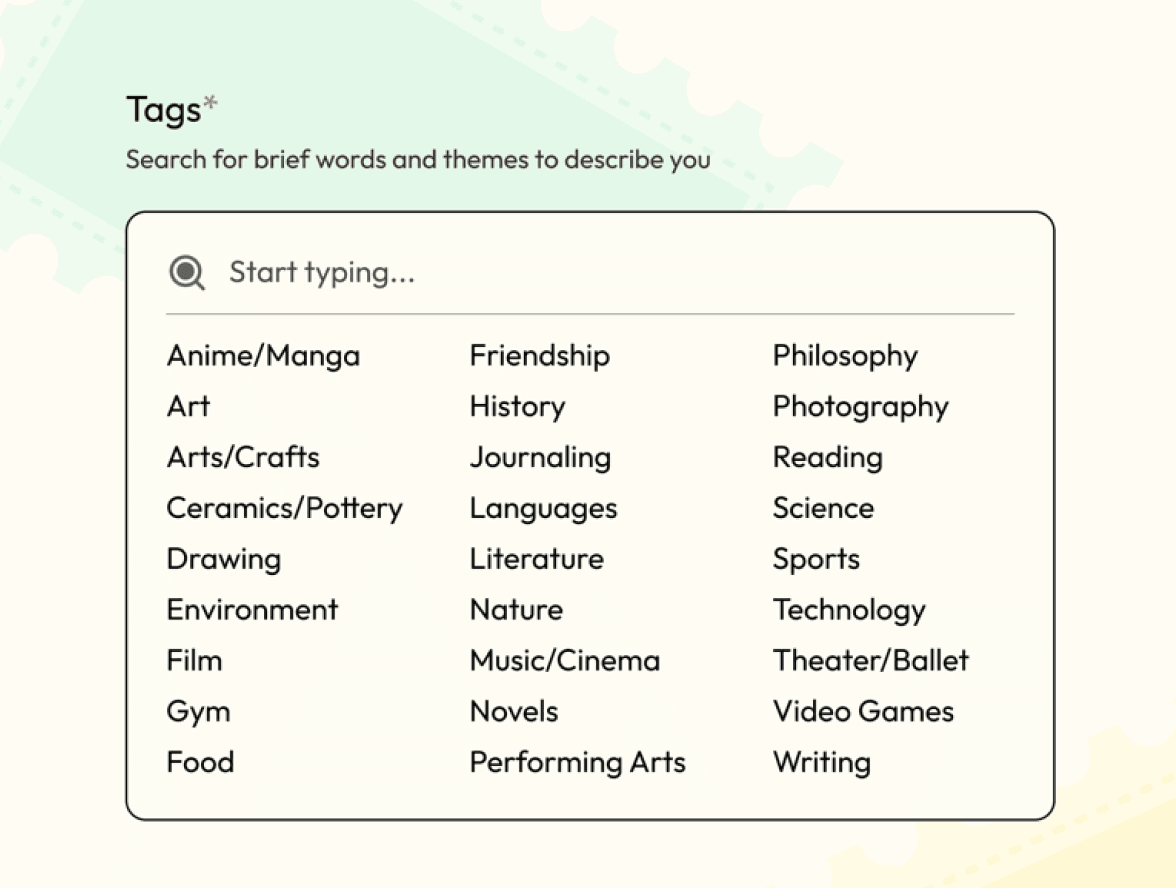 Pre-determined list of tags, which would simplify the process of connection-making.
