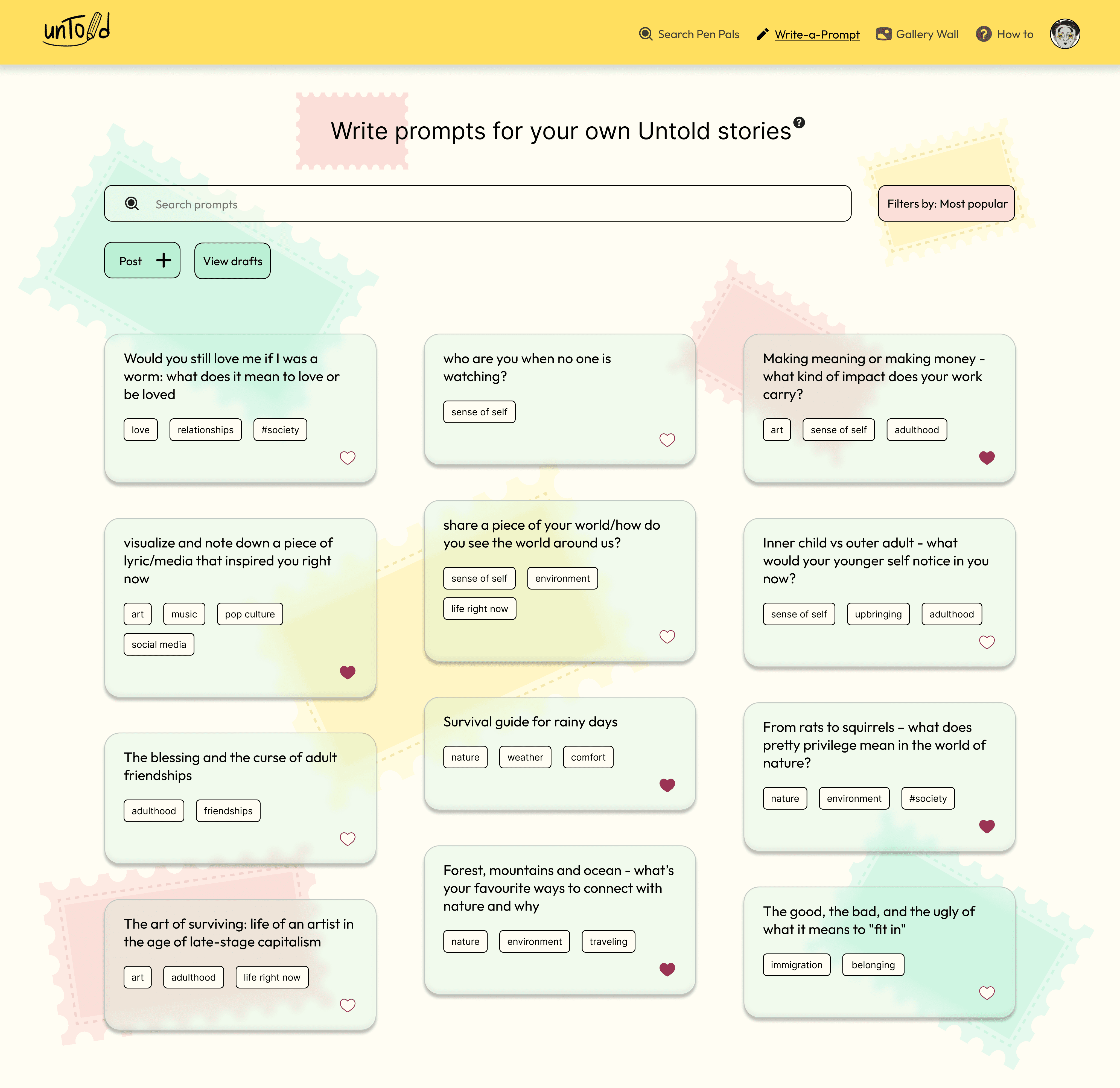 Where users can write or view other members’ suggested creative prompts.