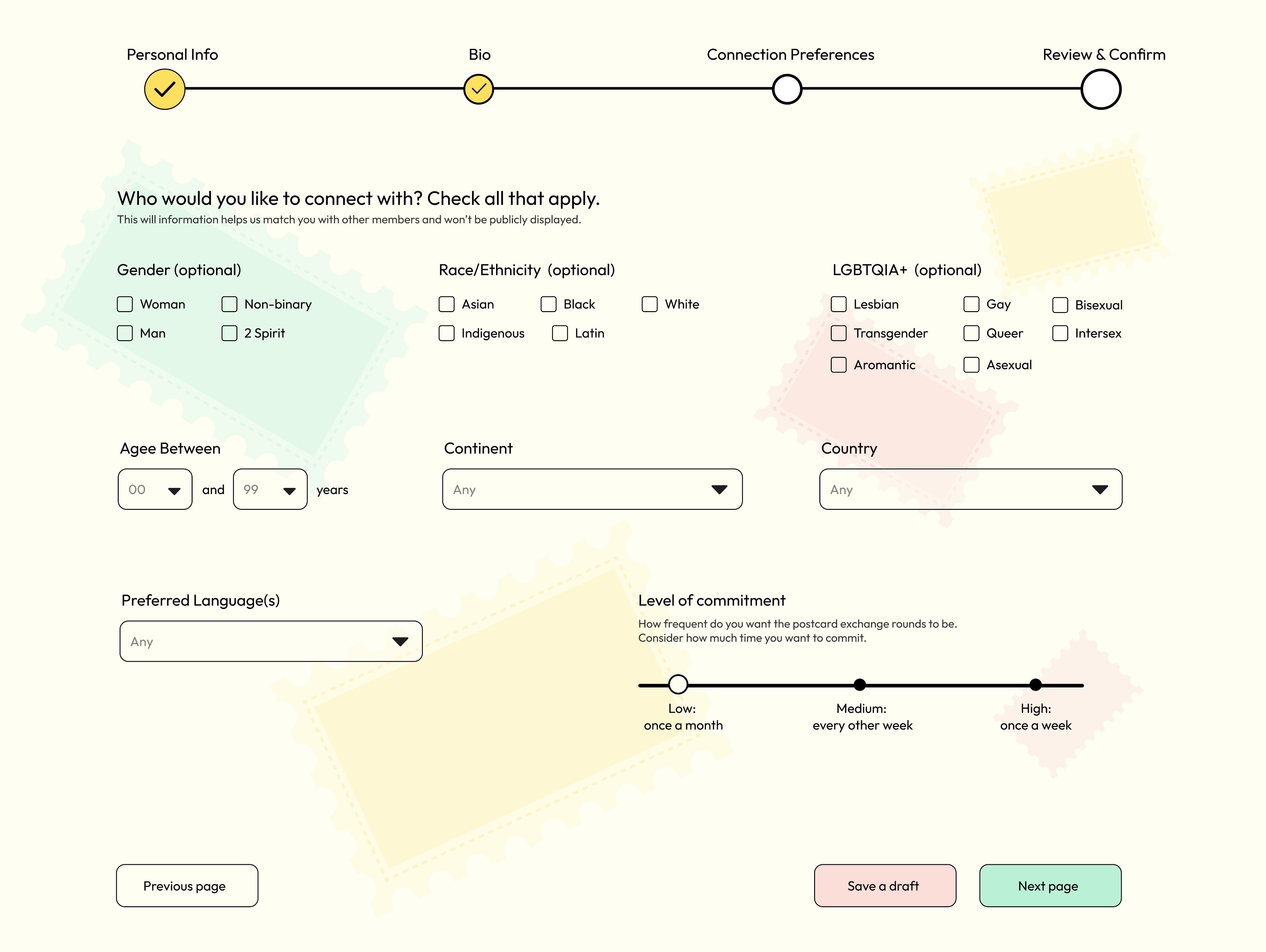 To make participants more comfortable in a group exchange setting that invites them to share personal experiences, I wanted to lean into somewhat childish, yet fun and almost magical aesthetic. Through the iterative user test sessions, users also indicated their preference for this visual direction.