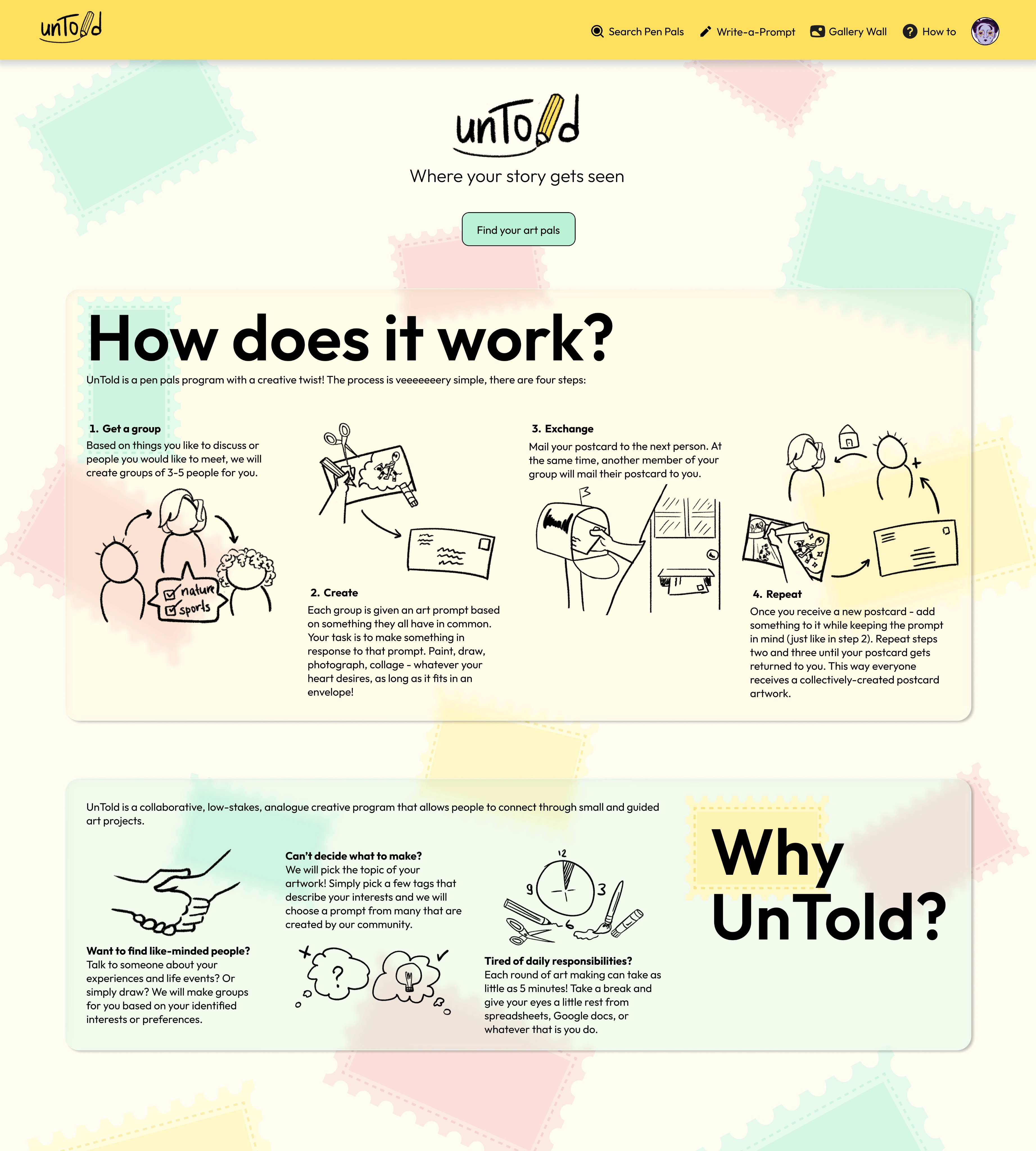Over the past year, I developed unTold - a pen pals-based collaborative art program that aims to bring people together for meaningful, personal conversations.